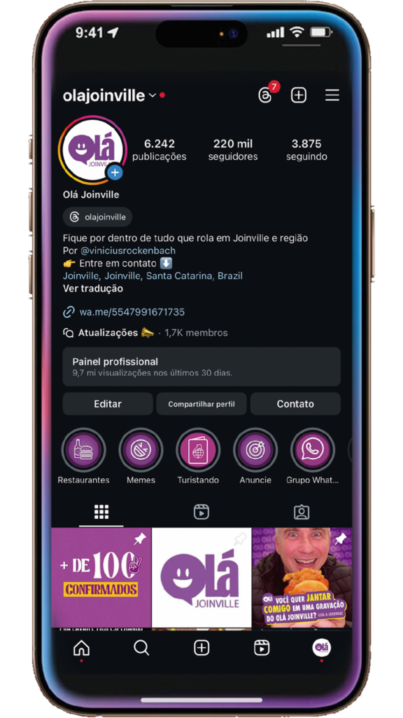 Pensando nisso, criamos o Olá Joinville – um perfil que já conta com mais de 200 mil seguidores da região, todos ansiosos para descobrir o que acontece de melhor na cidade.